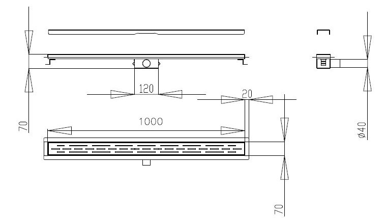 De douchegoot is gemaakt van roestvrij staal (RVS). Dit is een sterk materiaal dat goed tegen water kan en lang meegaat. De goot heeft een afmeting van 100 x 7 x 7 cm en wordt netjes in de douchevloer geplaatst.