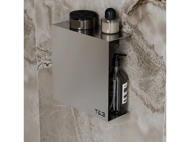 De gesloten vormgeving zorgt ervoor dat je spullen netjes op hun plaats blijven. Ideaal voor het opbergen van zeepdispensers, cosmetica of decoratieve accessoires naast de wastafel of in de douche. Dankzij het compacte formaat is deze plank ook perfect voor kleinere badkamers of toiletruimtes.