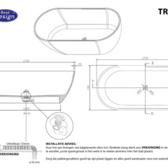 Het bad wordt geleverd inclusief sifon. De diameter van het afvoergat bedraagt 5/4″. Een kraan wordt niet meegeleverd.