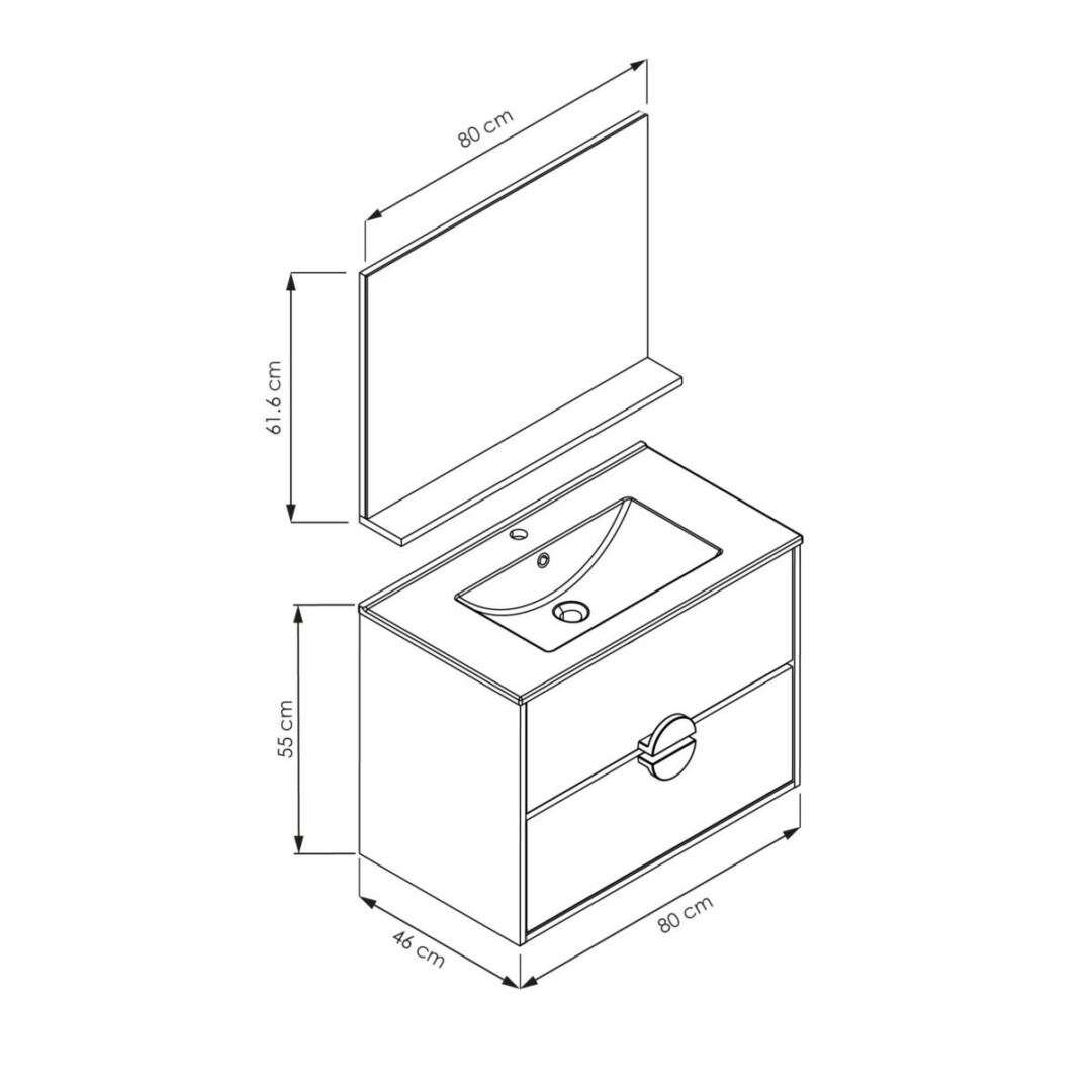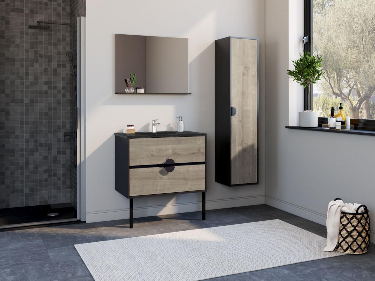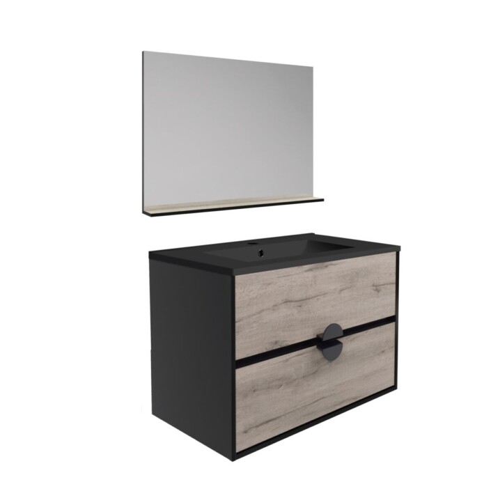 De Allibert SUNSET spiegel 80 cm 2 lades en matzwarte porselein wasbak is ideaal voor wie op zoek is naar een stijlvolle en functionele oplossing voor de badkamer, waarbij comfort en design samenkomen