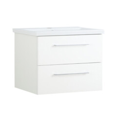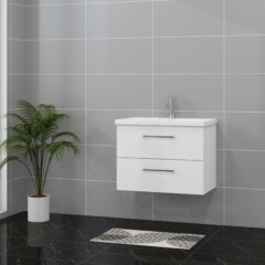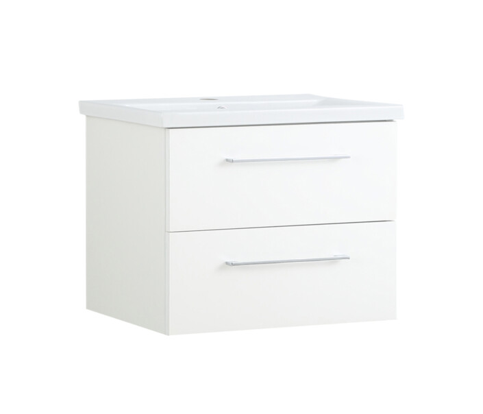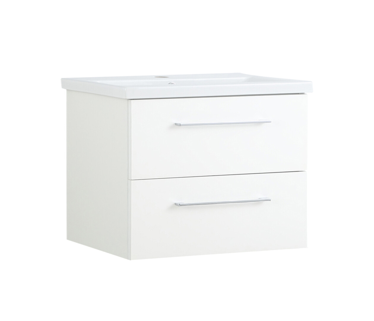 Het meubel wordt volledig gemonteerd geleverd. Dat betekent geen ingewikkelde bouwpakketten of losse onderdelen, maar direct een stevige en strak afgewerkte onderkast die eenvoudig aan de wand bevestigd kan worden. De elegante porseleinen wastafel wordt meegeleverd en sluit naadloos aan op het meubel.