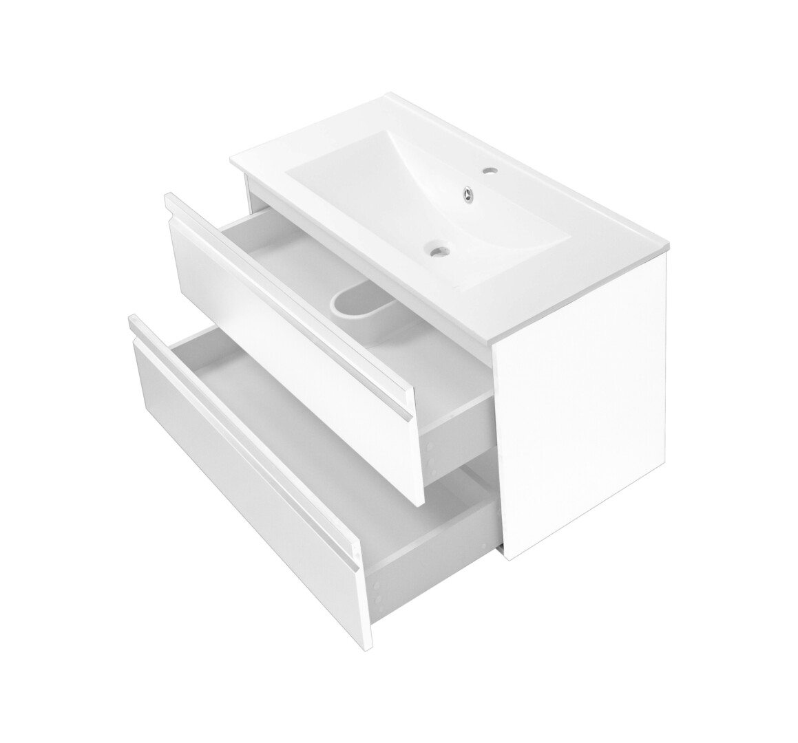 De hoogglans witte afwerking reflecteert licht en draagt bij aan een ruimtelijk gevoel in de badkamer. Hierdoor is het meubel ideaal voor zowel grote badkamers als ruimtes waarin je extra licht en openheid wilt creëren.