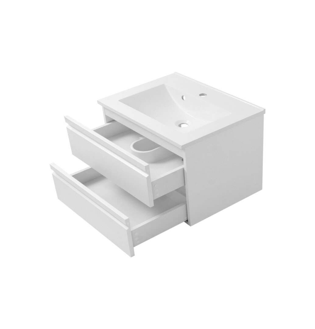 Het meubel is voorzien van twee ruime lades met softclose-functie, waardoor deze geruisloos en soepel sluiten. Dankzij de volledig uitschuifbare lades benut je de beschikbare opbergruimte optimaal en heb je altijd goed overzicht op je spullen.