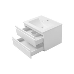 De hoogglans witte afwerking reflecteert licht en draagt bij aan een ruimtelijk gevoel in de badkamer. Hierdoor is dit meubel niet alleen geschikt voor grotere badkamers, maar ook een slimme keuze voor kleinere ruimtes.