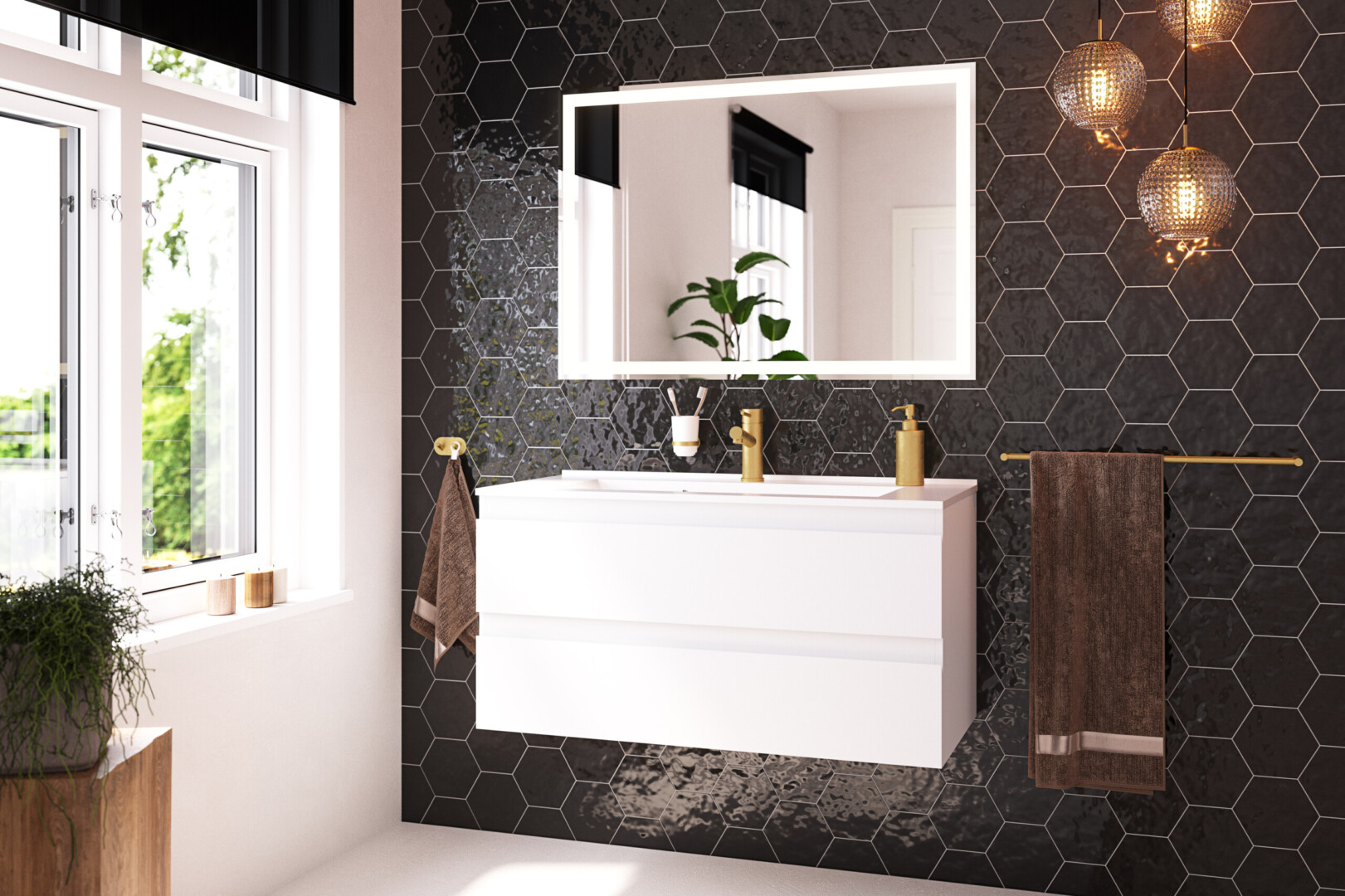 Het meubel wordt volledig gemonteerd geleverd en is voorzien van verstelbare ophangbeugels. Hierdoor is de installatie eenvoudig en kun je het meubel netjes en waterpas aan de wand monteren.