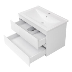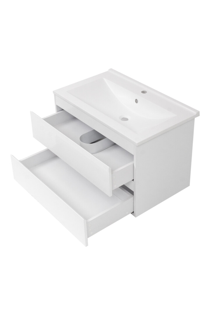 Het meubel is voorzien van twee ruime lades met softclose-functie, waardoor deze soepel en geruisloos sluiten. De volledig uitschuifbare lades zorgen ervoor dat je de volledige opbergruimte benut en altijd goed overzicht hebt op je spullen.