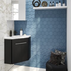 Dit fonteinmeubel uit de Corner-serie van Allibert is een fijne toevoeging aan bijvoorbeeld uw toilet of badkamer. Het hoekmeubel is ruimtebesparend en daarmee ideaal voor de kleinere ruimtes. Bovendien hangt het meubel aan de wand, waardoor u ruimte op de vloer overhoudt! De set bestaat uit een porseleinen wasbak en het fonteinmeubel. Het meubel bevat 1 deur met een handvat die tevens als handdoekhouder dient. De deur is voorzien van softclose scharnieren voor een geruisloze sluiting, deur omkeerbaar, sluiting rechts of links mogelijk. Het meubel wordt gemonteerd geleverd.