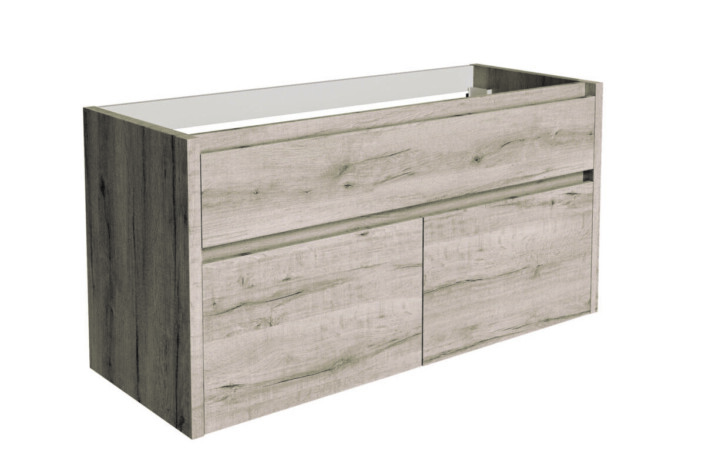 Bovenste 120cm brede lade met dubbele sifon uitsparing, dus voor wastafels met 2 wasbakken.