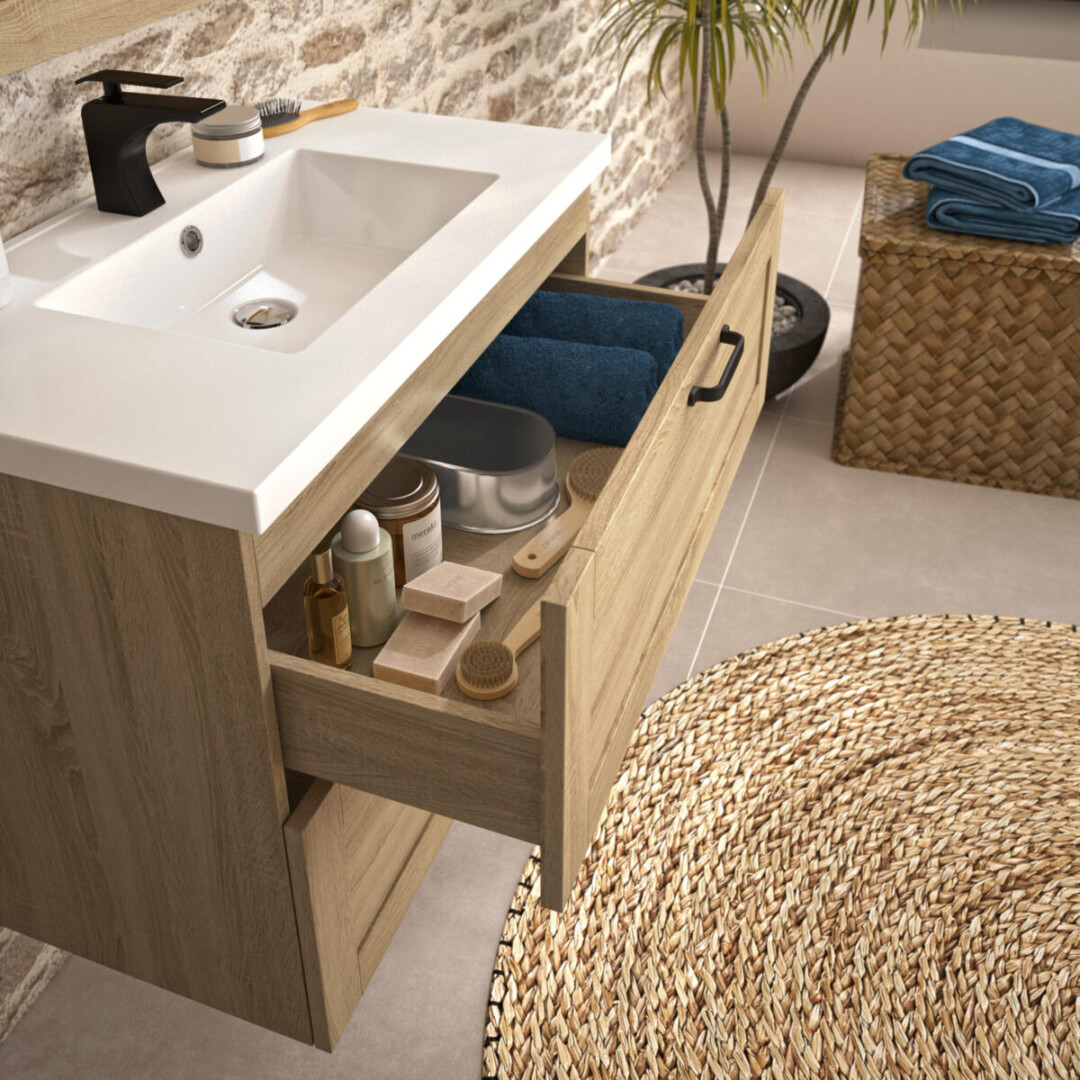 Transformeer uw badkamer met de Allibert Cambridge wastafelonderkast in eik hamilton. Dit meubelstuk combineert een elegante uitstraling met praktische functionaliteit, perfect voor moderne badkamers.