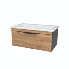 De NORTIQ Catalonia wastafelonderkast 100 cm in gouden eik is een moderne en elegante basis voor een stijlvolle badkamer. De warme houttint geeft het meubel een natuurlijke uitstraling, terwijl de strakke belijning en subtiele details zorgen voor een eigentijds karakter.