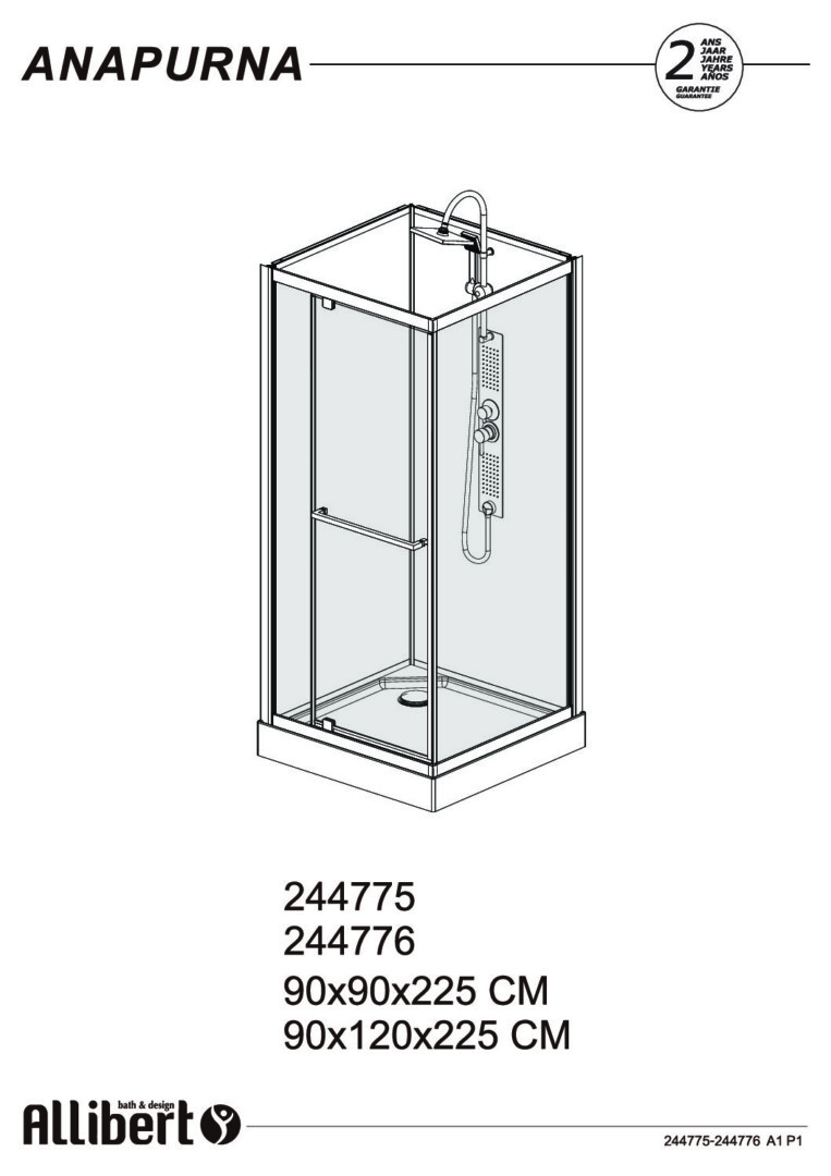 Alternatieve maten van de Allibert ANAPURNA douchecabine.