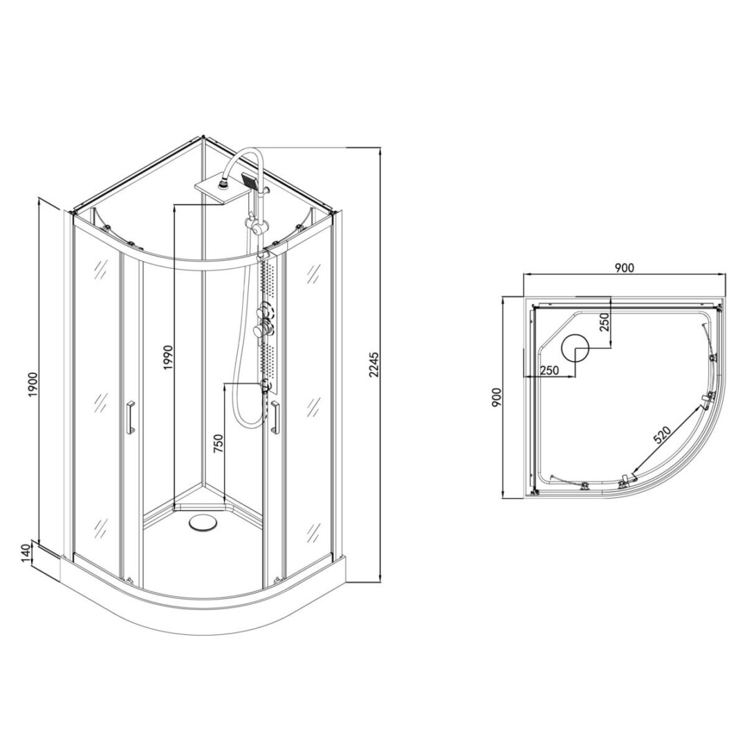 De EVEREST cabine is bewust ontworpen zonder gesloten dak, wat zorgt voor een open gevoel en een frisse, luchtige douche-ervaring. De regendouche steekt deels boven de cabine uit, waardoor er een royale afstand van 199 cm is tussen de regendouche en de vloer. Dit geeft u de ruimte om comfortabel te douchen, ongeacht uw lengte.