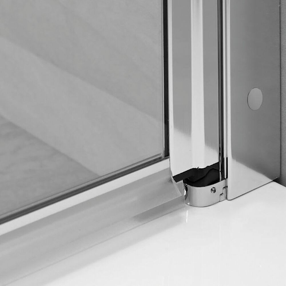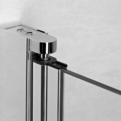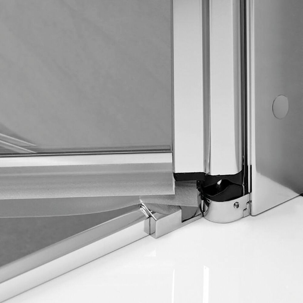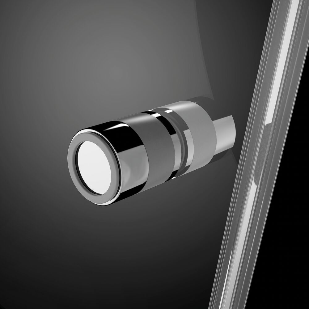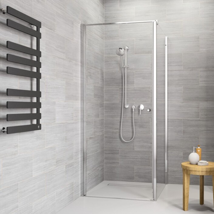 De Sealskin Code Draaideur (links) biedt een combinatie van stijl, veiligheid en functionaliteit, perfect voor moderne badkamers. Deze draaideur is vervaardigd uit 6 mm hoogwaardig veiligheidsglas, versterkt met een zilveren hoogglans metalen frame dat duurzaamheid en een luxe uitstraling garandeert. Het glas is behandeld met een antikalk laag, wat zorgt voor eenvoudig onderhoud en helderheid, zelfs bij dagelijks gebruik.