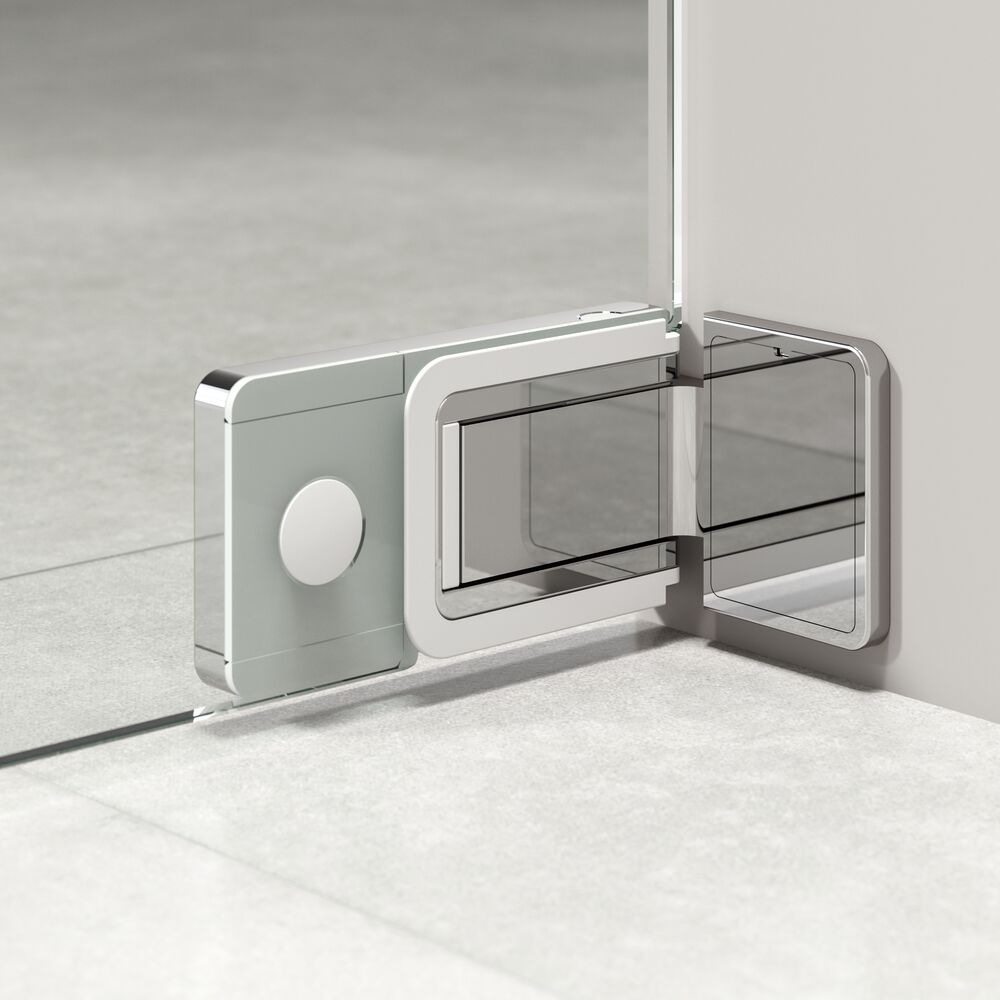 ✅ Frameloos en minimalistisch ontwerp Dankzij het profielloze design en de subtiele bevestigingen past deze draaideur perfect in een moderne badkamer.