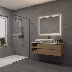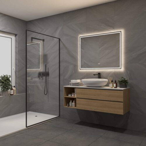 Voorzien van hi-power LED-verlichting rondom, traploos instelbare lichtkleur, dimfunctie, geïntegreerde spiegelverwarming en een dubbele touch bediening,