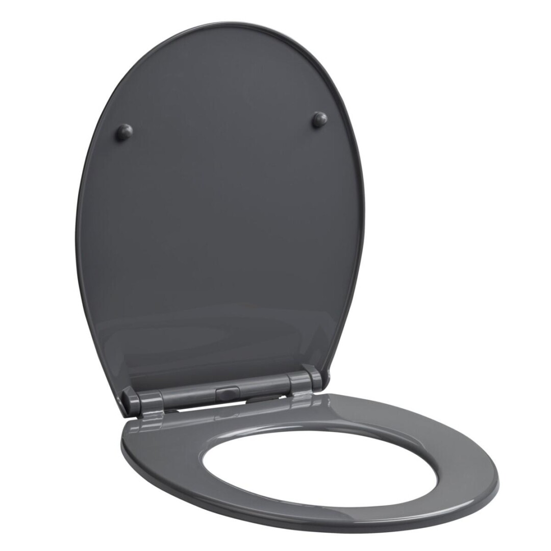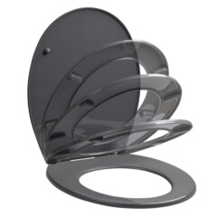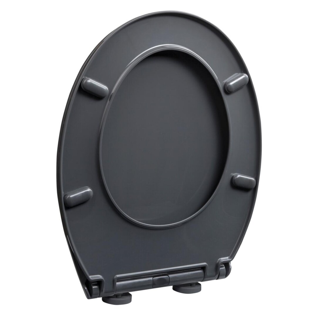 WC-zitting in Thermoplastic – Inclusief inox scharnieren – Bevestiging via de bovenkant – Afklikbaar met 1 knop – Soft Close sluiting – Standaard –Â Afm. :Â 37,2 x 5,2 x 46 cm –Â Gewicht :Â 1,00 kg