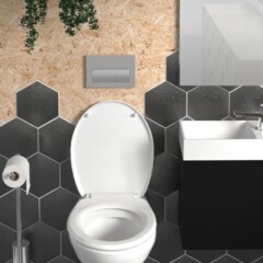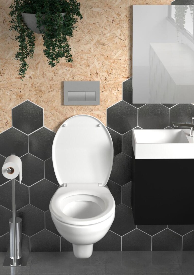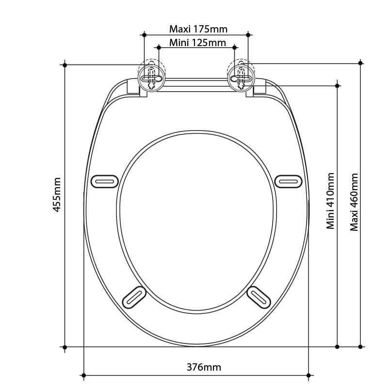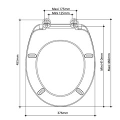 WC-zitting in Thermohardende kunststof – Inclusief inox scharnieren – Bevestiging via de onderkant – Anti-bacteriëel – Standaard – Afm. : 37,6 x 5 x 46 cm – Gewicht : 1,94-2,03 kg